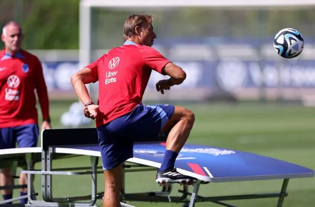 | Le sélectionneur Hervé Renard lors de la préparation des Bleues au centre de Clairefontaine, le 23 juin. |