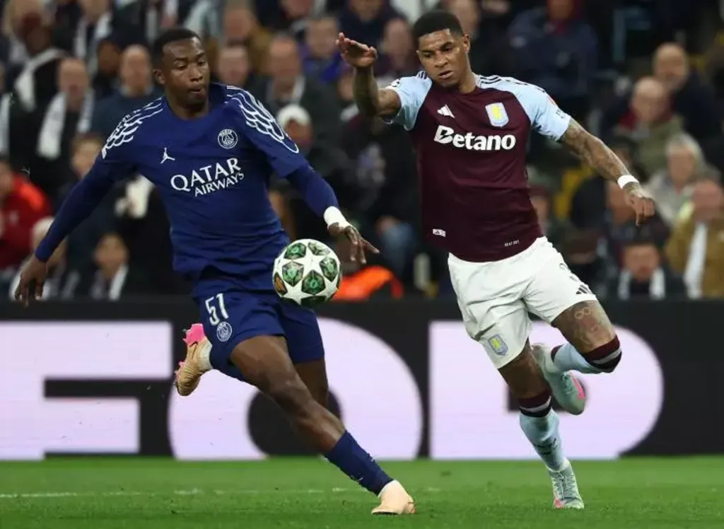 | L'attaquant Marcus Rashford (droite) avec Aston Villa contre le PSG en quart retour de Ligue des champions le 15 avril au stade Villa Park à Birmingham. |