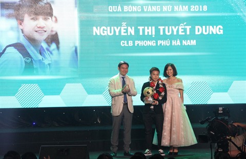 | Nguyên Thi Tuyêt Dung (centre), du Club Phong Phú Hà Nam, a gagné le Ballon d’Or chez les femmes. |