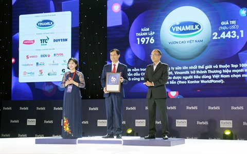 | Un représentant de Vinamilk reçoit le certificat de "Forbes Vietnam". |