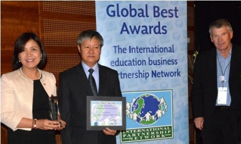 | Le vice-président de la VCCI, Vo Tân Thanh (centre), après la cérémonie de remise des prix à Oslo. |