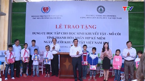 | L’Association Terre des Hommes Allemagne remet des outils d'apprentissage aux enfants handicapés de la province de Thanh Hoa. |