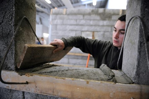 Un jeune compagnon du devoir se forme aux métiers de la maçonnerie, le 4 avril 2014, à Colomiers, en Haute-Garonne. Photo : AFP/VNA/CVN |