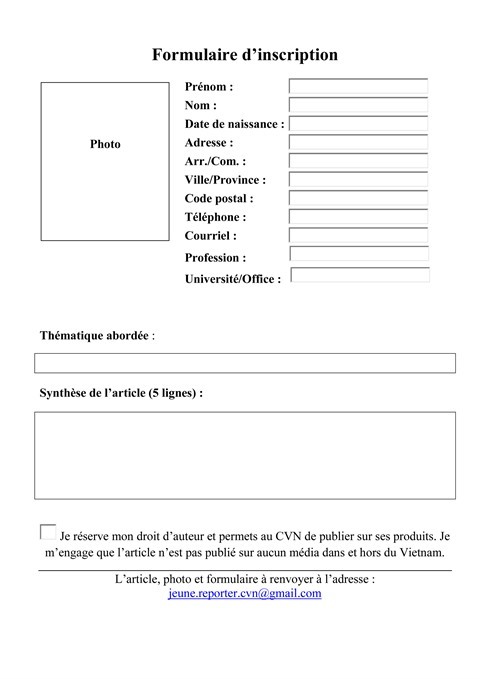 Voici le formulaire d'inscription du Concours d’écriture journalistique "Jeunes Reporters Francophones 2020" ayant pour thème "Comment la pandémie de COVID-19 a-t-elle changé notre vie ?".