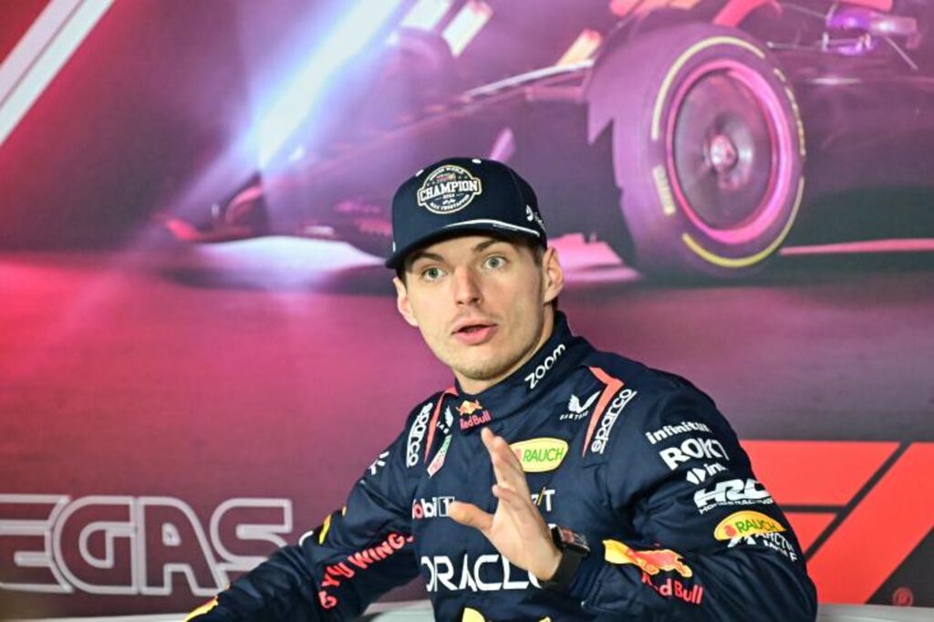 | Le pilote néerlandais de Red Bull, Max Verstappen, s'adresse à la presse après avoir remporté son quatrième titre mondial consécutif de Formule 1 à l'issue du GP de Las Vegas, le 23 novembre 2024. |