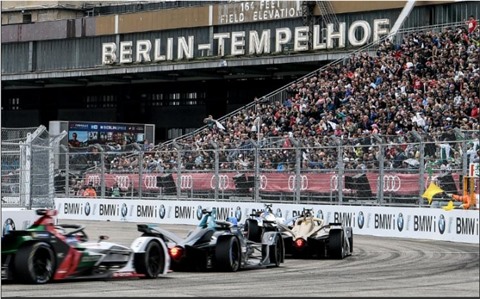 | Course de Formule E sur l'ancien aéroport de Tempelhof, le 25 mai 2019 à Berlin. |