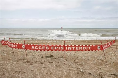 | Accès interdit à la plage de Villier-sur-Mer (Calvados), le 19 juin. |