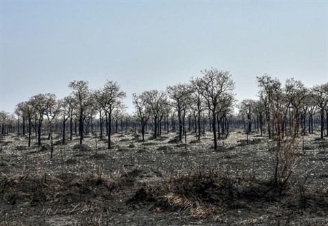 | Des forêts incendiées en août 2019 dans la région du Pantanal, en Bolivie. |