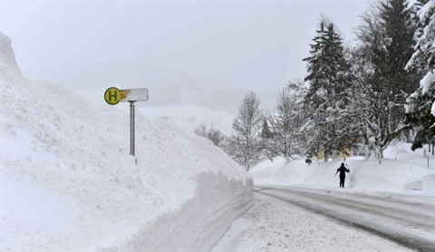 | Un arrêt de bus après de fortes chutes de neige dans le village de Filzmoos, en Autriche, le 7 janvier. |