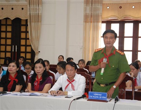 | Les représentants des services compétents de la province de Quang Tri répondent à des questions posées par les enfants. |