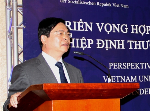 Auparavant, le ministre Vu Huy Hoàng avait eu une séance de travail avec le vice-chancelier allemand Sigmar Gabriel, qui est également ministre de l'Économie et de l'Énergie. Ils avaient discuté des mesures pour renforcer le partenariat bilatéral dans l'économie, le commerce et les investissements, accélérer les négociations de l'EVFTA et se préparer à la Conférence d'Asie-Pacifique des entreprises allemandes prévue à Hô Chi Minh-Ville en novembre. Le vice-chancelier Sigmar Gabriel avait affirmé à cette occasion que son pays soutenait une conclusion de l'EVFTA cette année.