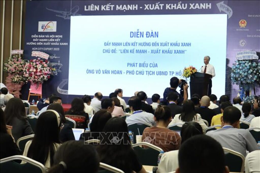 | Vo Van Hoan, vice-président du Comité populaire de Hô Chi Minh-Ville, prend la parole au Forum de promotion des liens vers les exportations vertes, tenu le 25 mai dans la mégapole du Sud. |