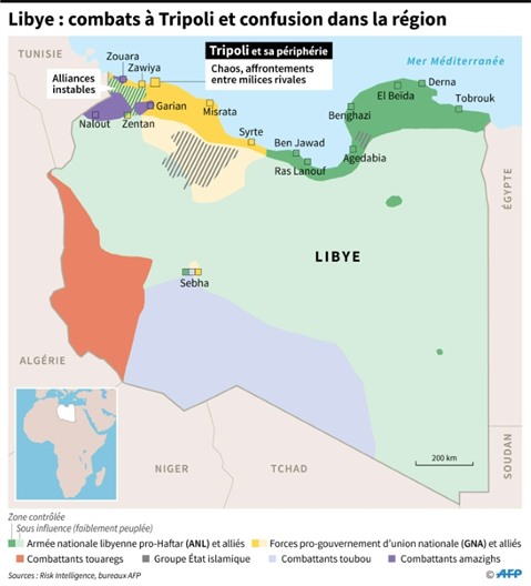 Les combats au sud de Tripoli ont ainsi opposé des groupes venus, notamment, de Tarhouna et de Misrata à des milices tripolitaines théoriquement sous l'autorité du GNA.