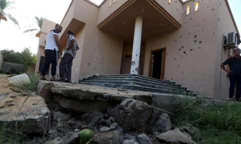 | Un site visé par un tir de mortier à Tripoli, le 30 août. |