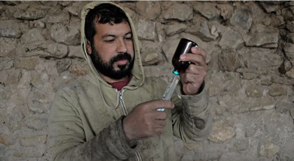 | Préparation du vaccin pour le bétail dans un village en Irak. |