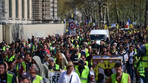 | Des manifestants défilent à l'appel des "gilets jaunes", le 30 mars à Paris. |