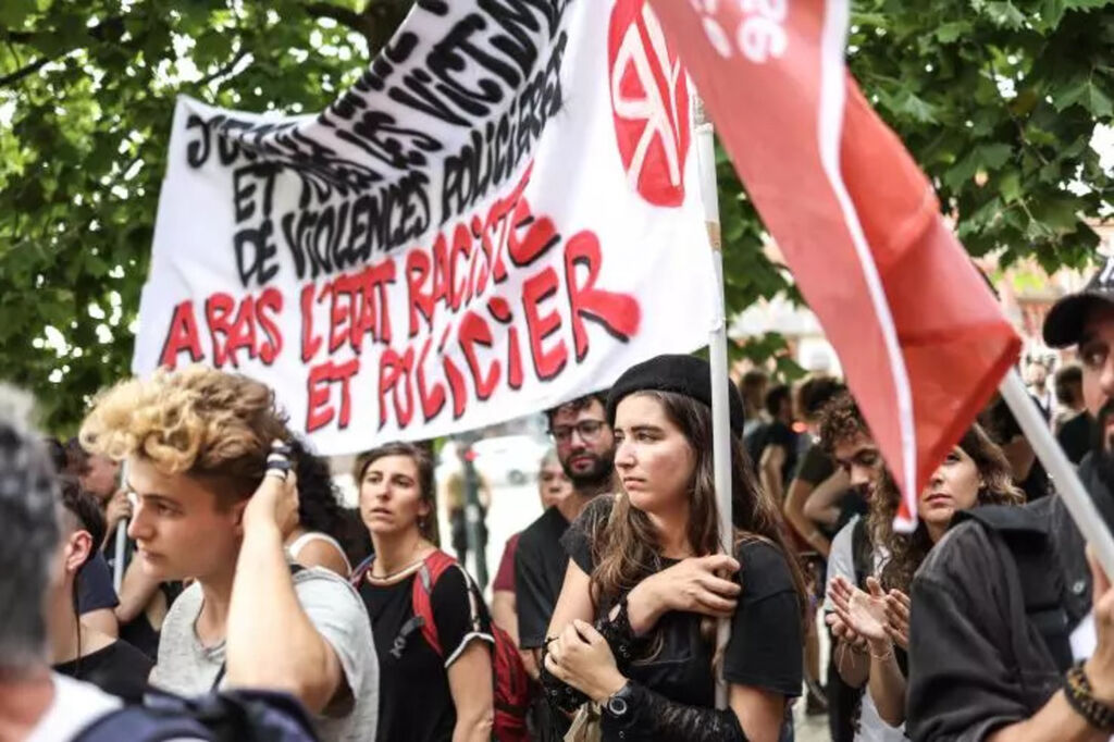| Manifestation le 5 juillet 2023 à Toulouse contre le racisme et les violences policières. |