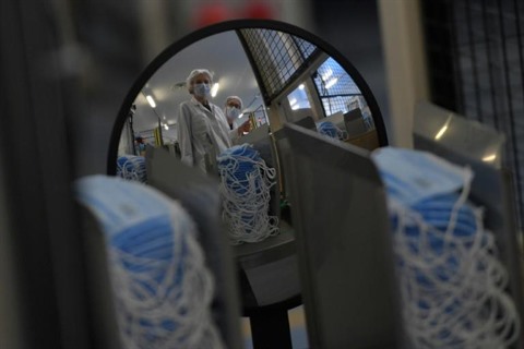 | Des masques fabriqués à l'usine Kolmi-Hopen de Saint-Barthélemy-d'Anjou près d'Angers, le 31 mars. |