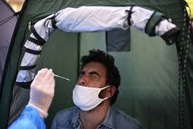 | Un homme testé au COVID-19 dans un laboratoire parisien le 4 septembre. |