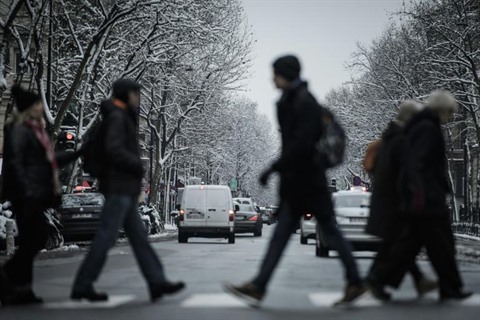 | Des piétons dans les rues de Paris, le 7 février, après d'importantes chutes de neige |