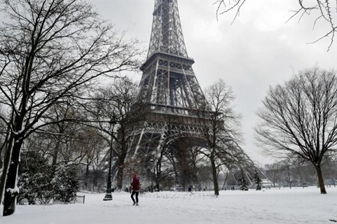 | Le champ de Mars et la Tour Eiffel enneigés le 7 février. |