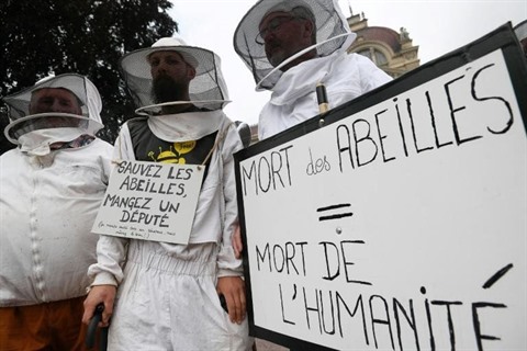 | Des apiculteurs lancent un cri d'alarme sur le déclin des abeilles à Strasbourg, le 7 juin. |