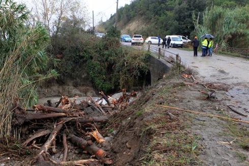 | Les intempéries ont atteint la Corse où une route près de Aleria est devenue impraticable après de fortes pluies, le 29 novembre 2014 |