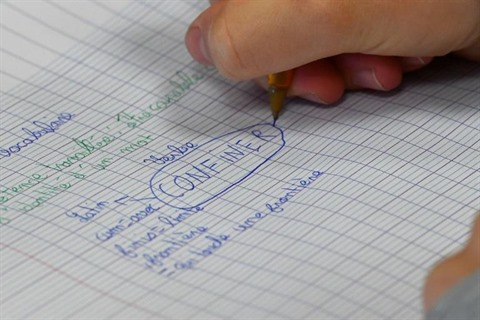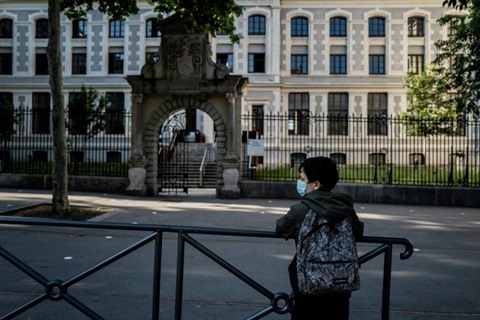 | Un enfant devant son collège, le 18 mai à Lyon. |