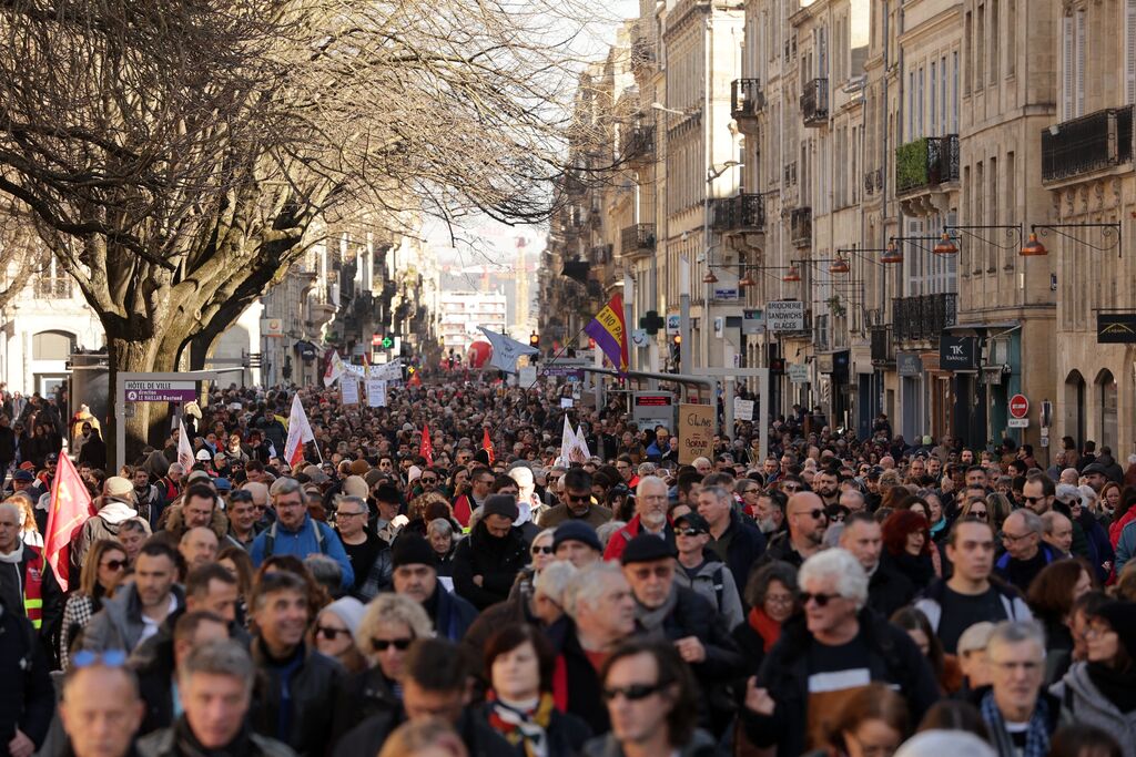 | Des milliers de personnes lors d'une mobilisation à Bordeaux, le 11 février. |