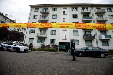 | Un policier à l'intérieur d'un périmètre de sécurité près d'un immeuble de Mulhouse, le 2 octobre en France. |