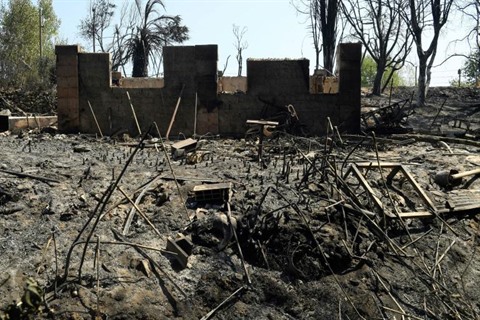 | Une maison détruite par un incendie de forêt, le 18 août, près de Grimaud, dans le Var. |