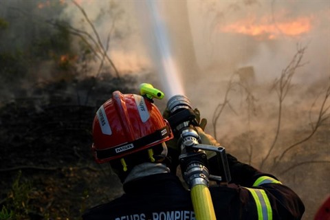 | Un pompier lutte contre un incendie à Vidauban, le 18 août, dans le Var (France). |