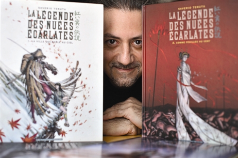 Parmi ces héritiers d’Hugo Pratt (Corto Maltese), Saverio Tenuta, 44 ans, a démarché lui-même les éditeurs français pour sa série La légende des nuées écarlates, une histoire de samouraïs et de loups, et a été accueilli aux Humanoïdes Associés, la maison de ses rêves.