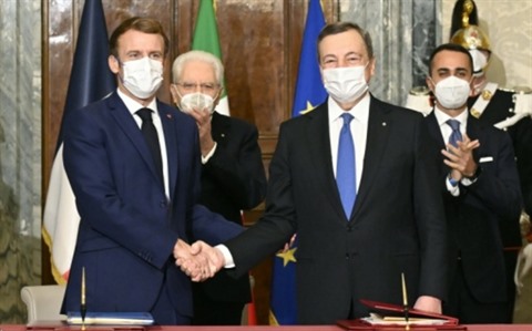 Le traité a été paraphé peu après 09h00 (08h00 GMT) au palais présidentiel du Quirinal par le président français Emmanuel Macron et le chef du gouvernement Mario Draghi, en présence du président italien Sergio Mattarella.