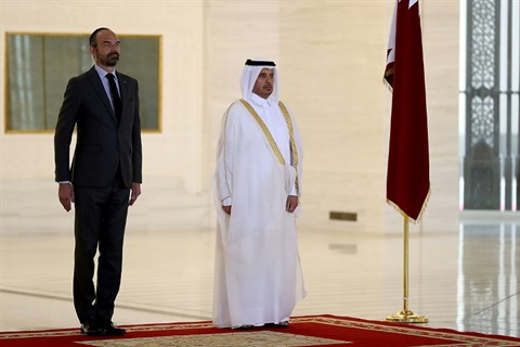 | Mohammed bin Abdulrahman bin Jassim al-Than (droite) et Edouard Philippe, le 28 mars 2018 à Doha. |