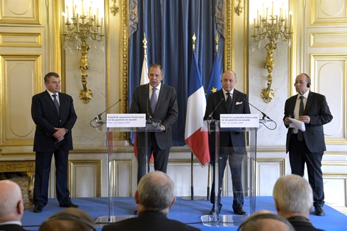 Laurent Fabius et Sergueï Lavrov se sont réunis au Quai d'Orsay à Paris, avec leurs collègues de la Défense, Jean-Yves Le Drian et Anatoli Serdioukov, pour le 11e Conseil annuel de coopération franco-russe sur la sécurité (CCQS), créé en 2002 par les chefs d'État des deux pays.