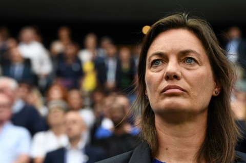| La coach de la France Corinne Diacre lors du match face au Brésil le 23 juin au Havre lors du Mondial. |