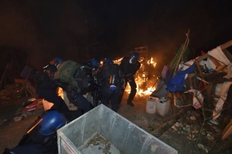 | Photo fournie par la Gendarmerie nationale de l'opération d'évacuation du Bois Lejuc, épicentre de la lutte contre le projet Cigéo d'enfouissement des déchets nucléaires à Bure le 22 février. |
