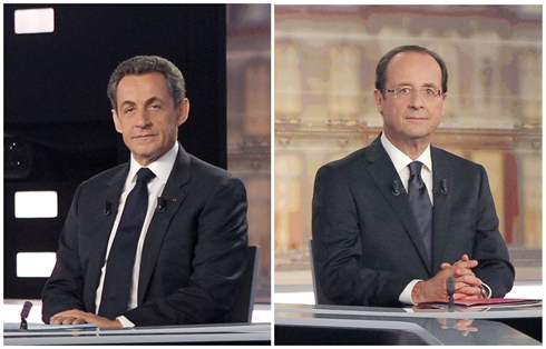 | Les candidats Nicolas Sarkozy (gauche) et François Hollande |