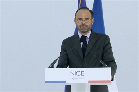 | Le Premier ministre français Édouard Philippe, le 14 juillet à Nice, lors d'un hommage aux 86 personnes tuées lors de lattentat du 14 juillet 2016 sur la Promenade des Anglais. |