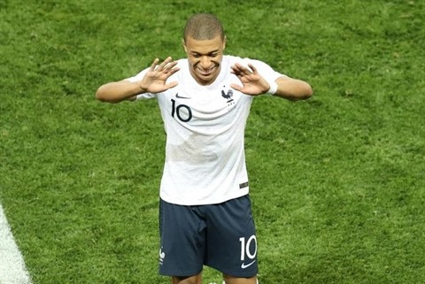 | L'attaquant français Kylian Mbappé jubile lors de la victoire face à l'Italie à Nice en match amical, le 1er juin. |