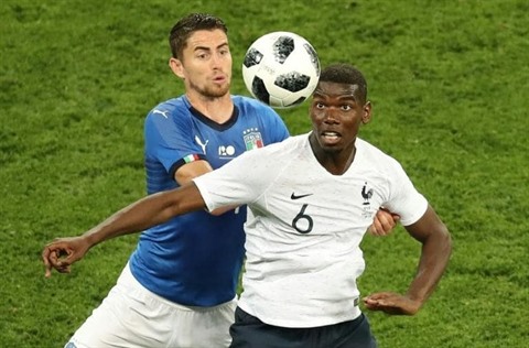 | Le Français Paul Pogba (droite) lors du match amical face à l'Italie, le 1er juin |
