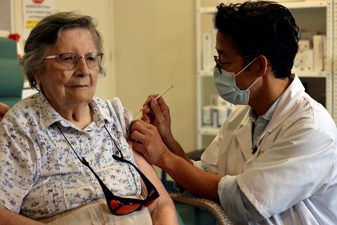 Une personne âgée reçoit sa troisième dose de vaccin Pfizer-BioNtech, le 13 septembre à Paris. Photo : AFP/VNA/CVN |