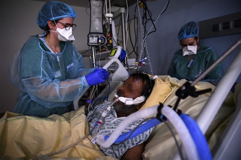 | Traiter un patient du COVID-19 dans un hôpital à Paris, en mars. |
