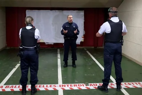 | Séance d'entraînement de policiers au tir, le 10 juin au commissariat de Chessy, en Seine-et-Marne. |
