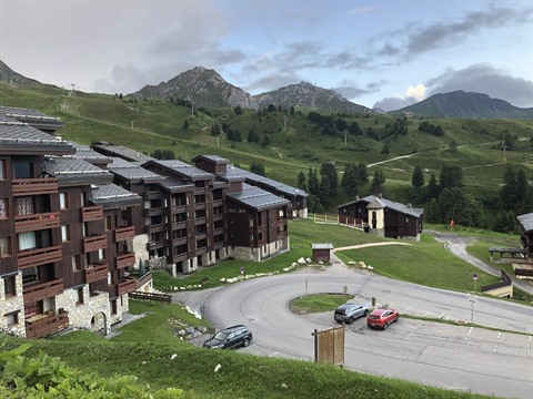 | Vue partielle de La Plagne Tarentaise, une des plus belles stations de sports d'hiver au monde. |