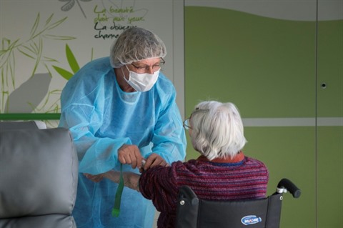 | Un test sérologique pratiqué dans un Ehpad de Bergheim, le 14 avril en France. |