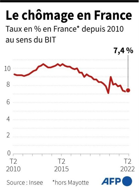 Selon les chiffres du chômage au sens du Bureau international du travail (BIT) publiés vendredi 12 août par l'Insee, le chômage se stabilise à 7,4% de la population active en France (hors Mayotte), soit 2,3 millions de personnes, contre 7,3% au premier trimestre 2022.