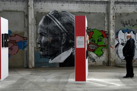 | Un homme visite l'exposition aux Halles de la Cartoucherie à Toulouse, le 4 mai. |