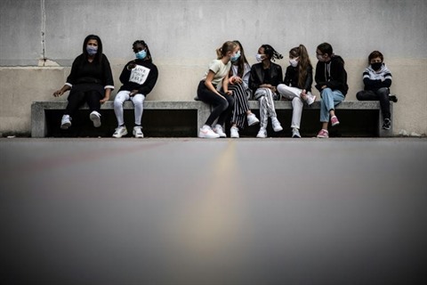| Des élèves dans la cour d'un collège à Vincennes, le 1er septembre. |